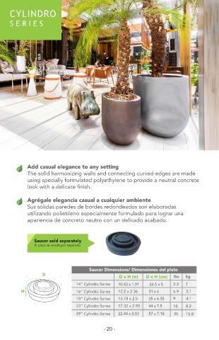 29” Cylindro Series 22.44 x 2.83 57 x 7.18 35 15.8 23” Cylindro Series 22.5 x 24.62 57.15 x 62.53 17.25 x 19.25 43.81 x 48.89 18 8.2
