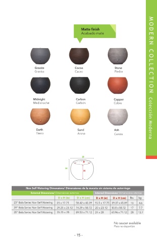 Self Watering Dimensions/ Dimensiones de la maceta con sistema de autorriego Non Self Watering Dimensions/ Dimensiones de la maceta sin sistema de autorriego