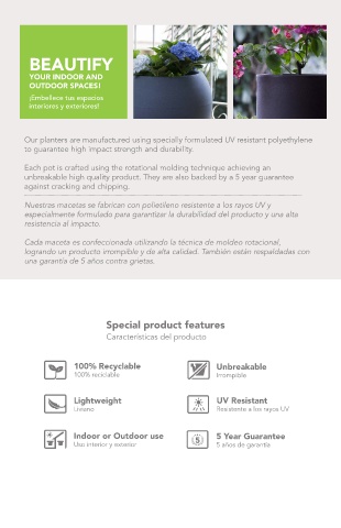 Nuestras macetas se fabrican con polietileno resistente a los rayos UV y