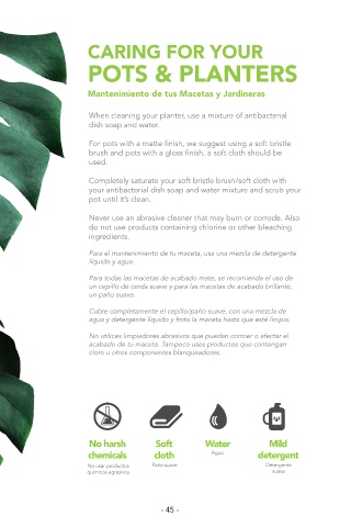 Para el mantenimiento de tu maceta, usa una mezcla de detergente