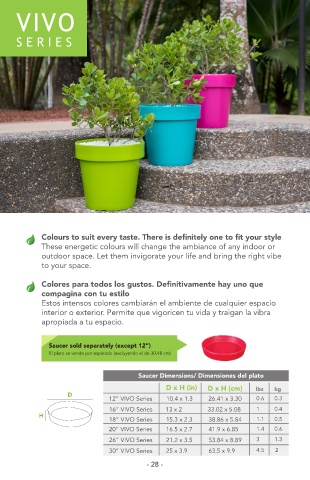 12” VIVO Series  10.4 x 1.3  26.41 x 3.30  0.6  0.3           12” VIVO Series  12.12 x 11.12 x 8.62  30.78 x 28.24 x 21.89  1.5  0.6