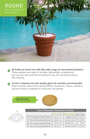 14” Round Decorated Planter 9.6 x 1.1 24.38 x 2.79 0.4 0.1 14” Round Decorated Planter 13.12 x 11.62 x 7.87 33.32 x 29.51 x 19.98 2 0.9